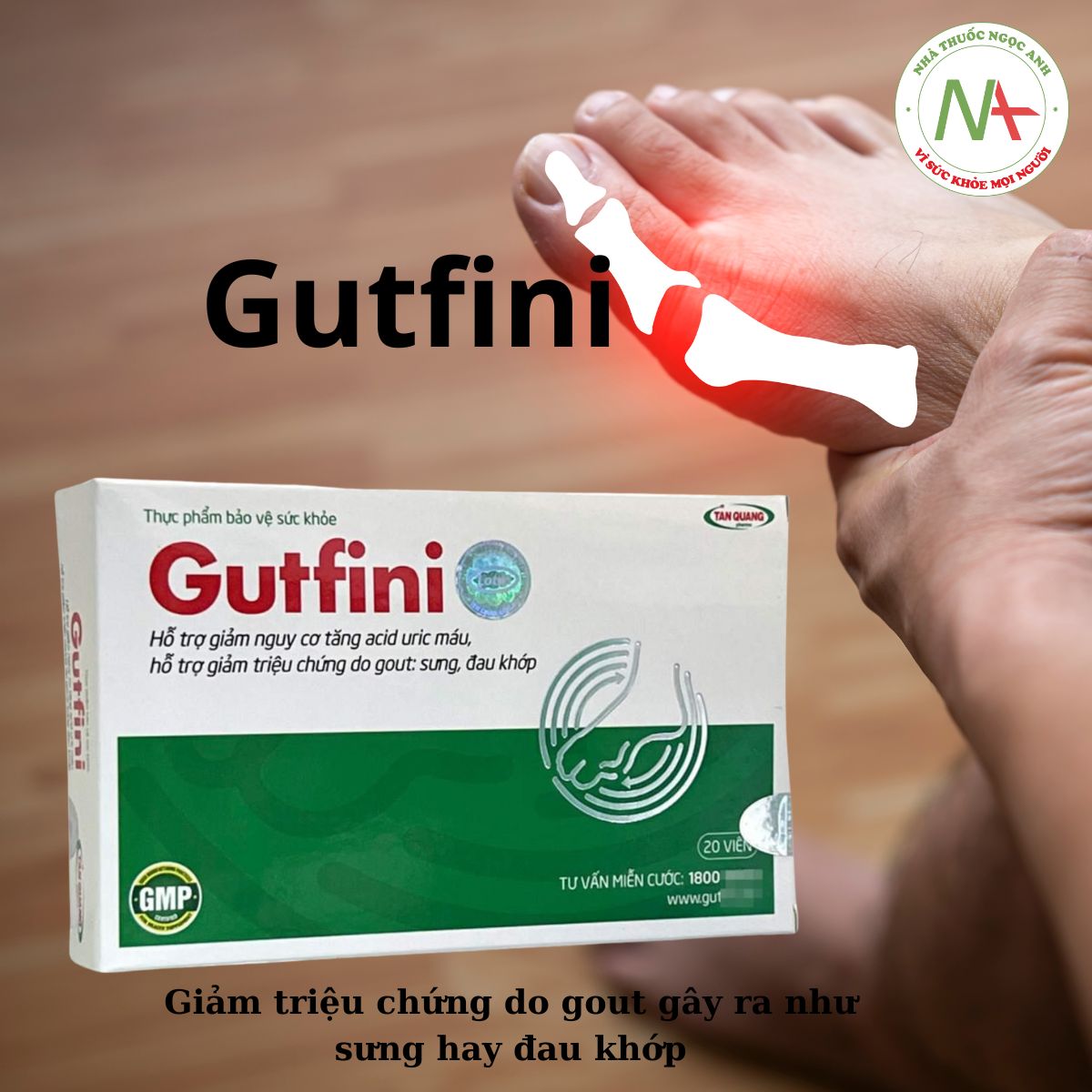 Gutfini có tác dụng hỗ trợ giảm triệu chứng do gout gây ra như sưng hay đau khớp, giúp giảm nguy cơ tăng acid uric máu