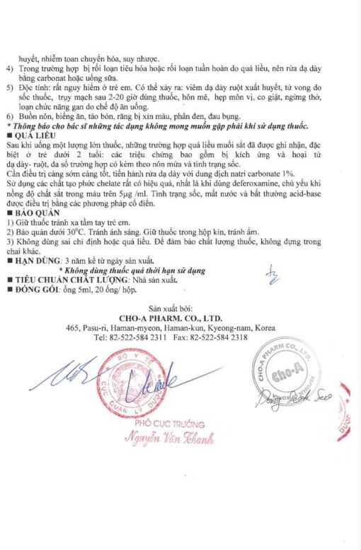- Khi nồng độ sắt trên 5μg/ ml thì việc sử dụng các chất tạo phức chelate nhất là deferosamin.