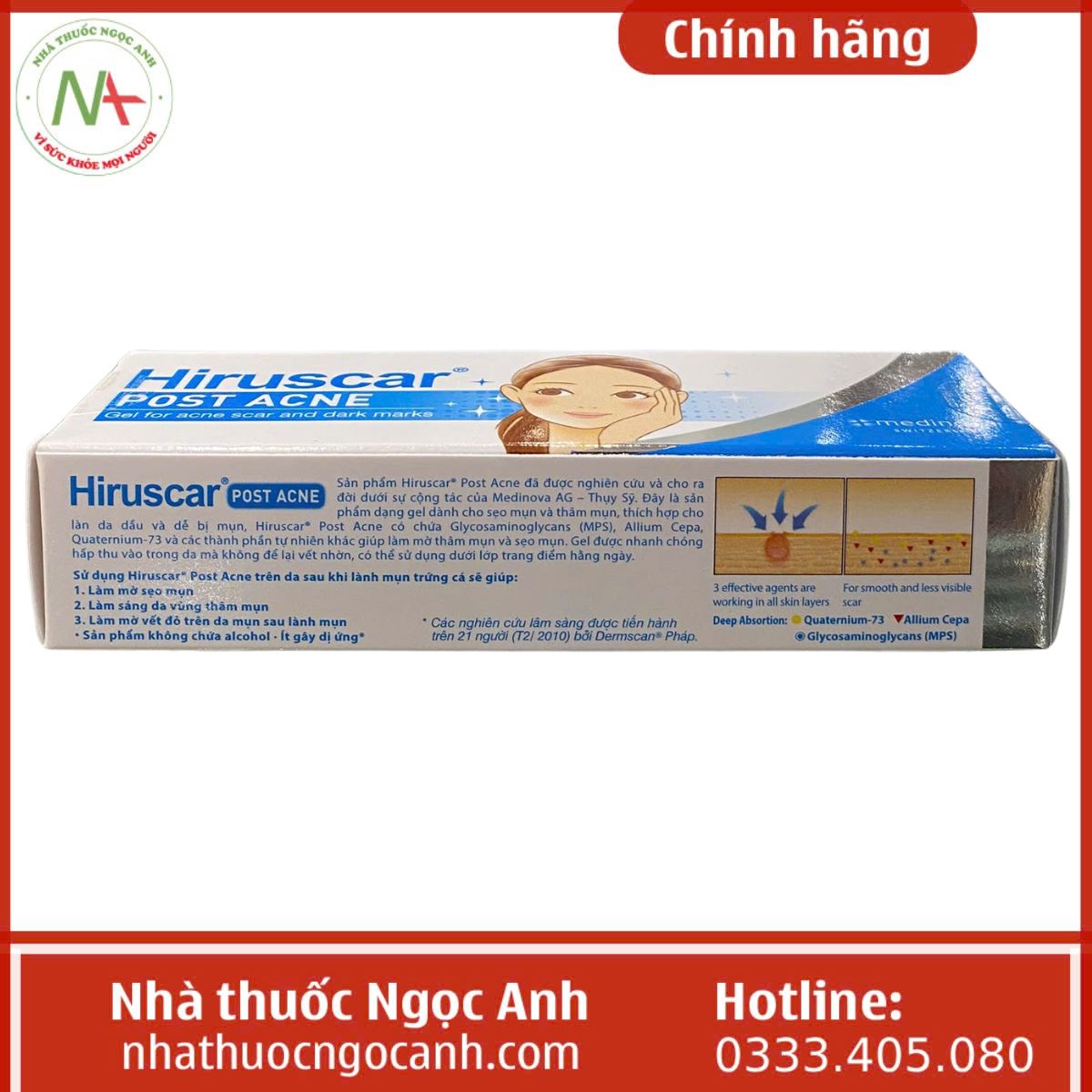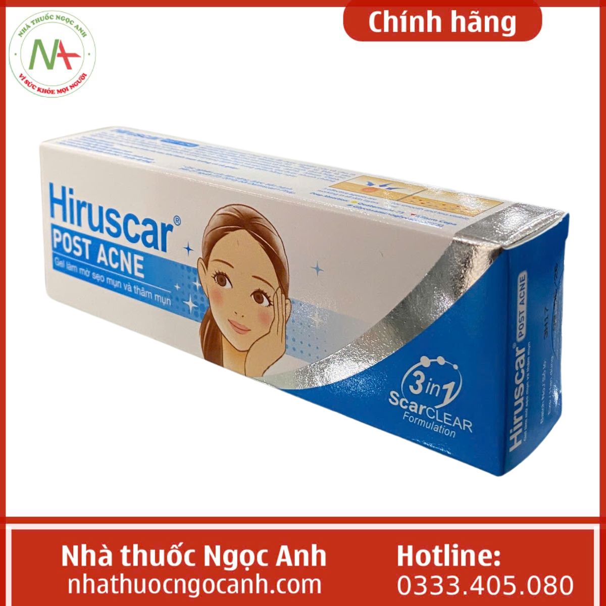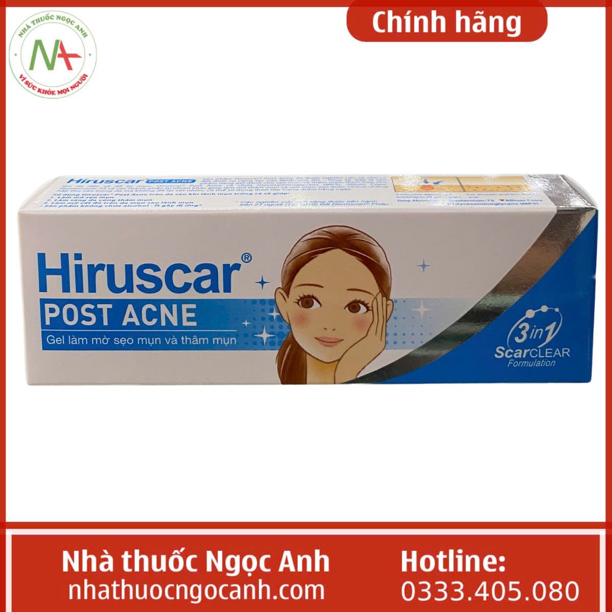 - Hiruscar Post Acne được các bác sĩ chỉ định sử dụng cho những người bị mụn trứng cá, sau khi đã lành mụn trứng cá giúp làm sáng các vết thâm mụn, vết đỏ da đồng thời làm mờ sẹo mụn.