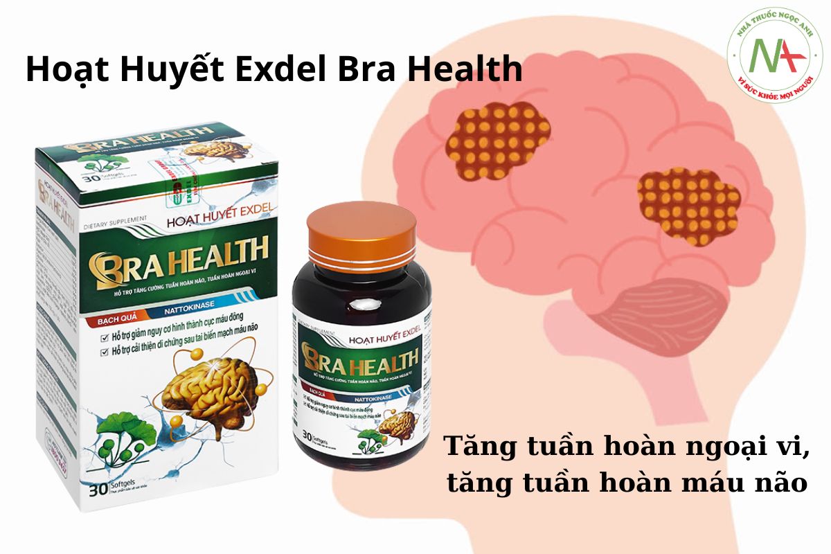 Hoạt Huyết Exdel Bra Health có tác dụng tăng tuần hoàn ngoại vi, tăng tuần hoàn máu não, lưu thông máu não, giảm triệu chứng thiểu năng tuần hoàn não, giảm nguy cơ hình thành cục máu đông gây tắc nghẽn mạch máu, cải thiện di chứng sau tai biến mạch máu não