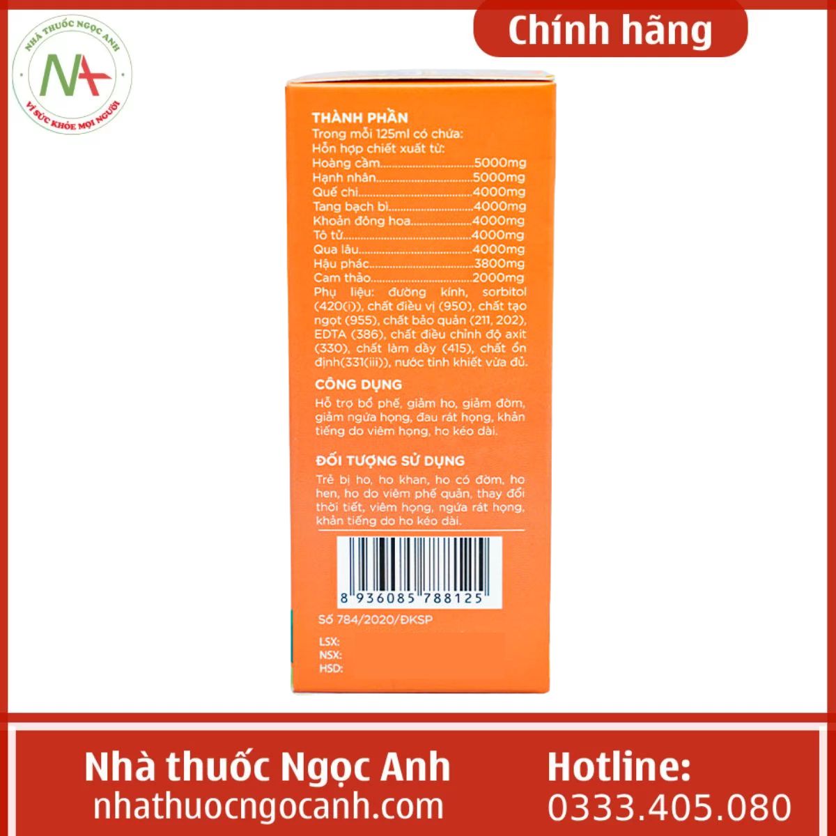 - Số đăng ký: 784/2020/ĐKSP.