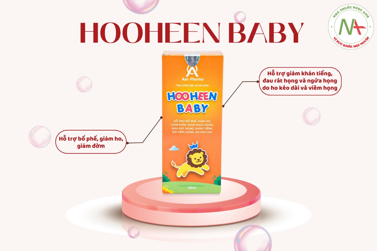 => Hooheen Baby hỗ trợ bổ phế, giảm ngứa, rát, đau họng, giảm ho, đồng thời còn hỗ trợ giảm khản tiếng do tình trạng ho lâu ngày, viêm họng.