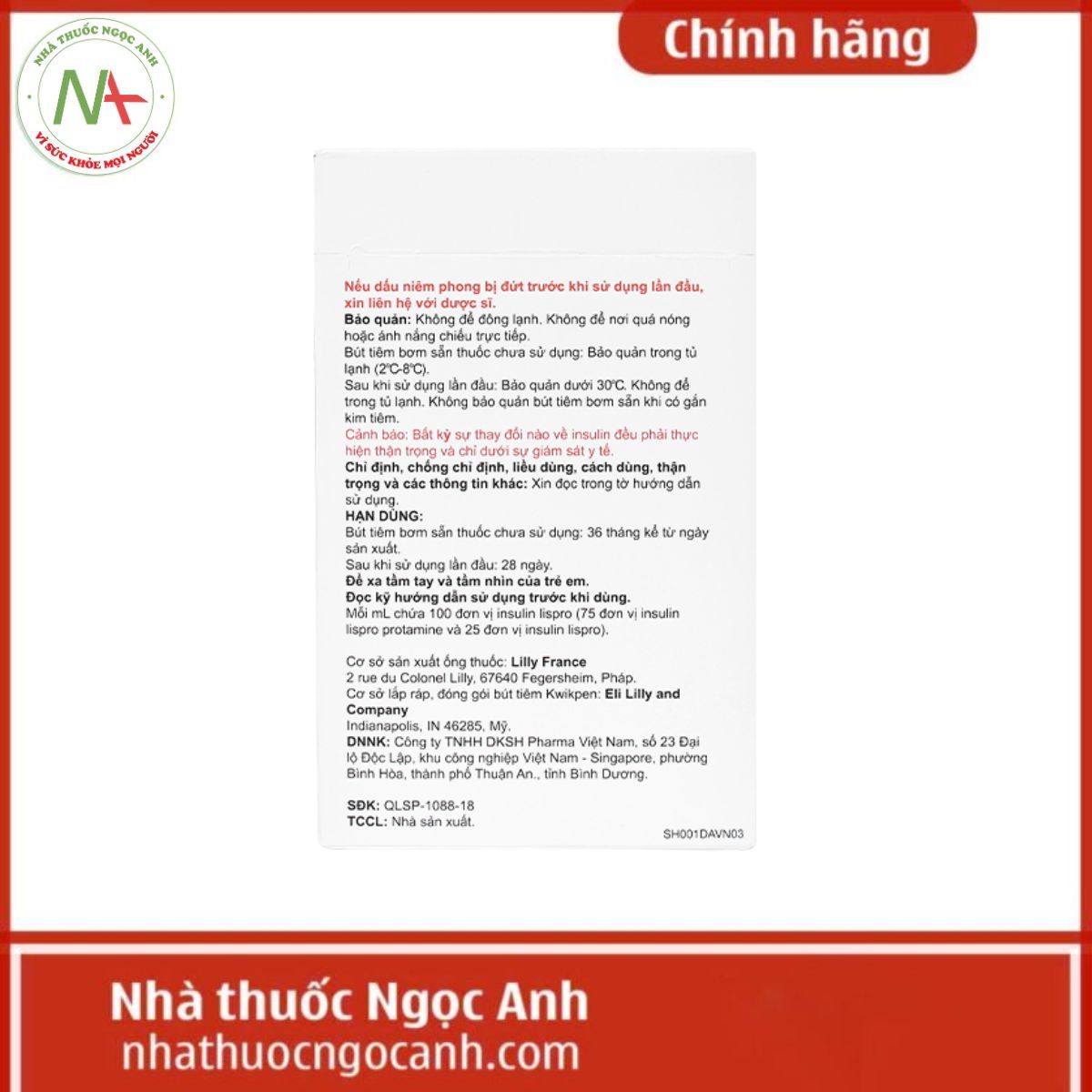 - Mỗi ml chứa 100 đơn vị (U) (tương đương với 3,5mg) insulin lispro