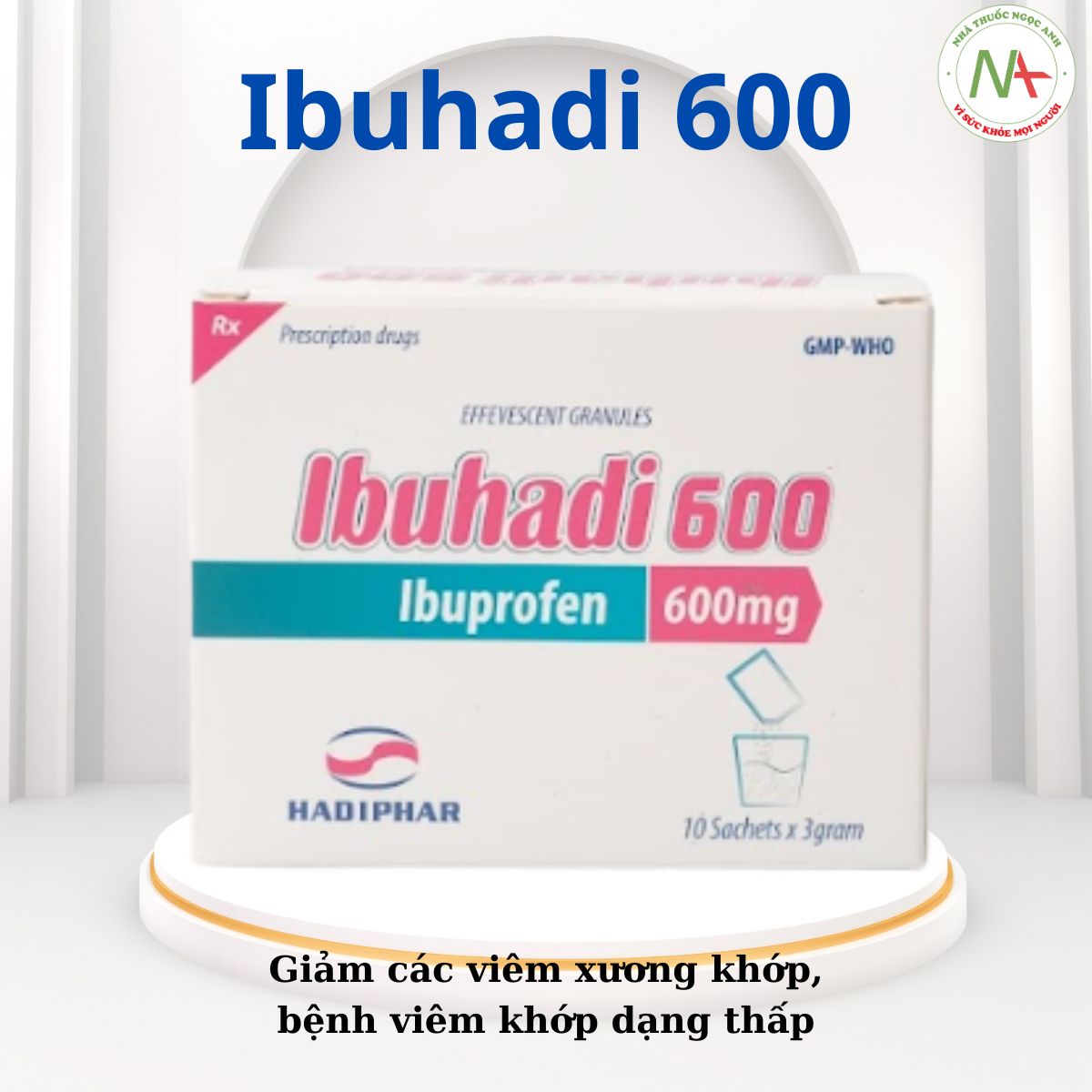 Ibuhadi 600 được dùng trong giảm các triệu chứng, dấu hiệu của viêm xương khớp, bệnh viêm khớp dạng thấp, giảm đau, kháng viêm, hạ sốt từ nhẹ đến vừa trong trường hợp đau răng, nhức đầu hay đau bụng kinh