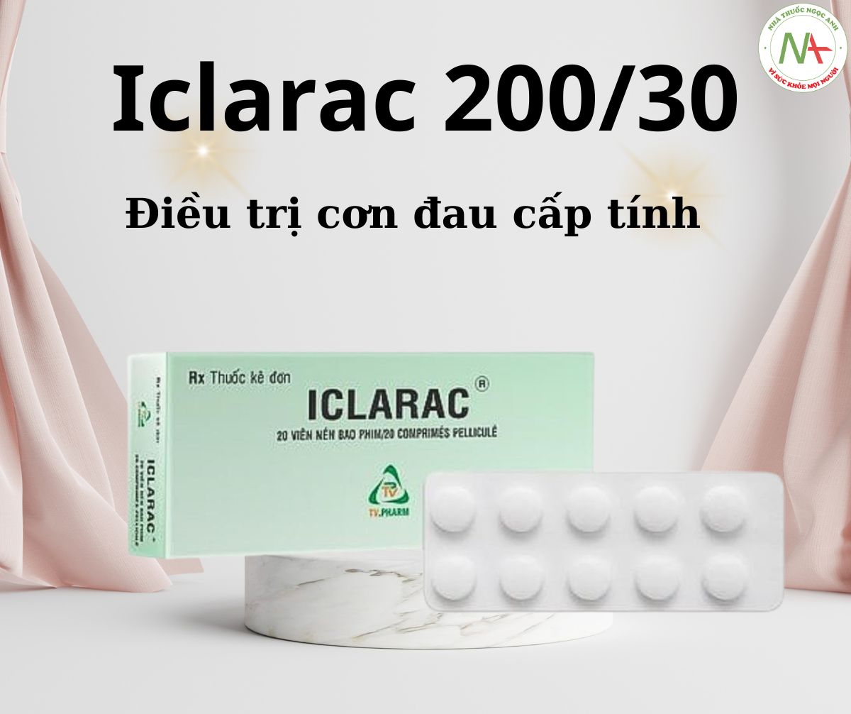 Iclarac 200/30 được dùng trong điều trị cơn đau cấp tính ở người, trung bình đến nặng ở người không đáp ứng với thuốc giảm đau opioid