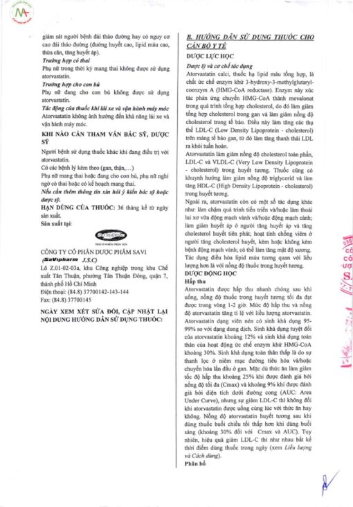 Nhà sản xuất: Công ty cổ phần dược phẩm SaVi.