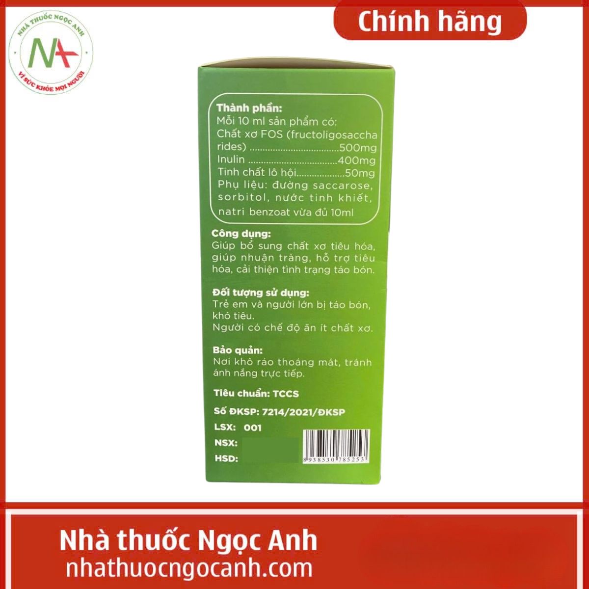 | Chất xơ FOS (fructoligosaccharides) | 500mg |