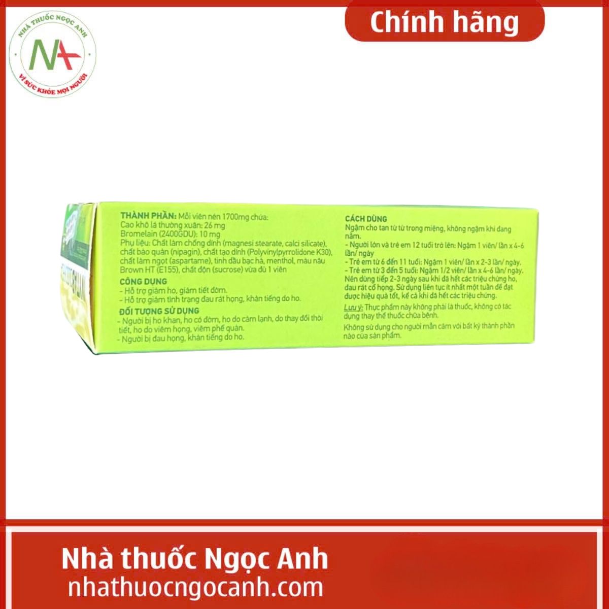 Ivytab Dược Khoa với sự kết hợp của cao khô lá thường xuân cùng bromelain có công dụng cải thiện triệu chứng đau rát vùng họng, khan tiếng do ho kéo dài, dai dẳng không khỏi, đồng thời hỗ trợ giảm ho và giảm tình trạng tăng tiết đờm.