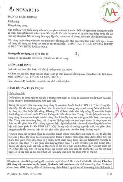 - Tờ hướng dẫn sử dụng thuốc Jadenu 180mg. Tải file pdf tại đây.