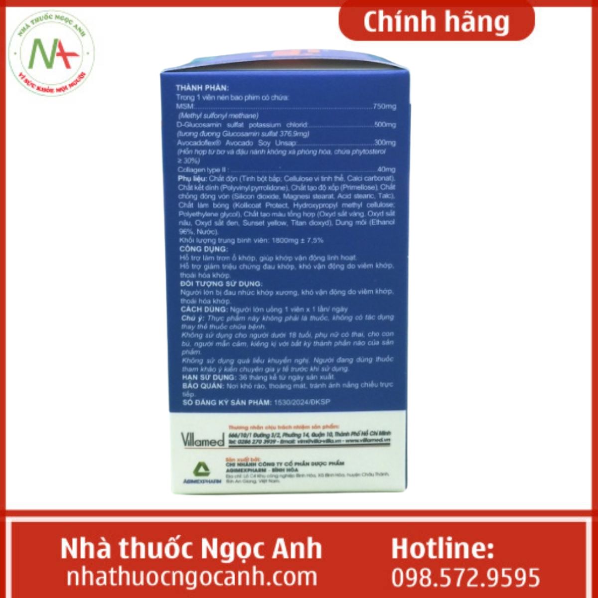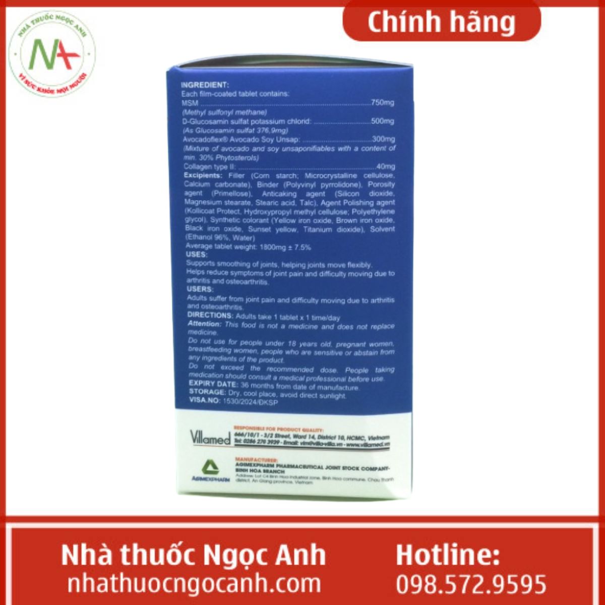 - MSM (Methyl sulfonyl methane) hàm lượng 750mg