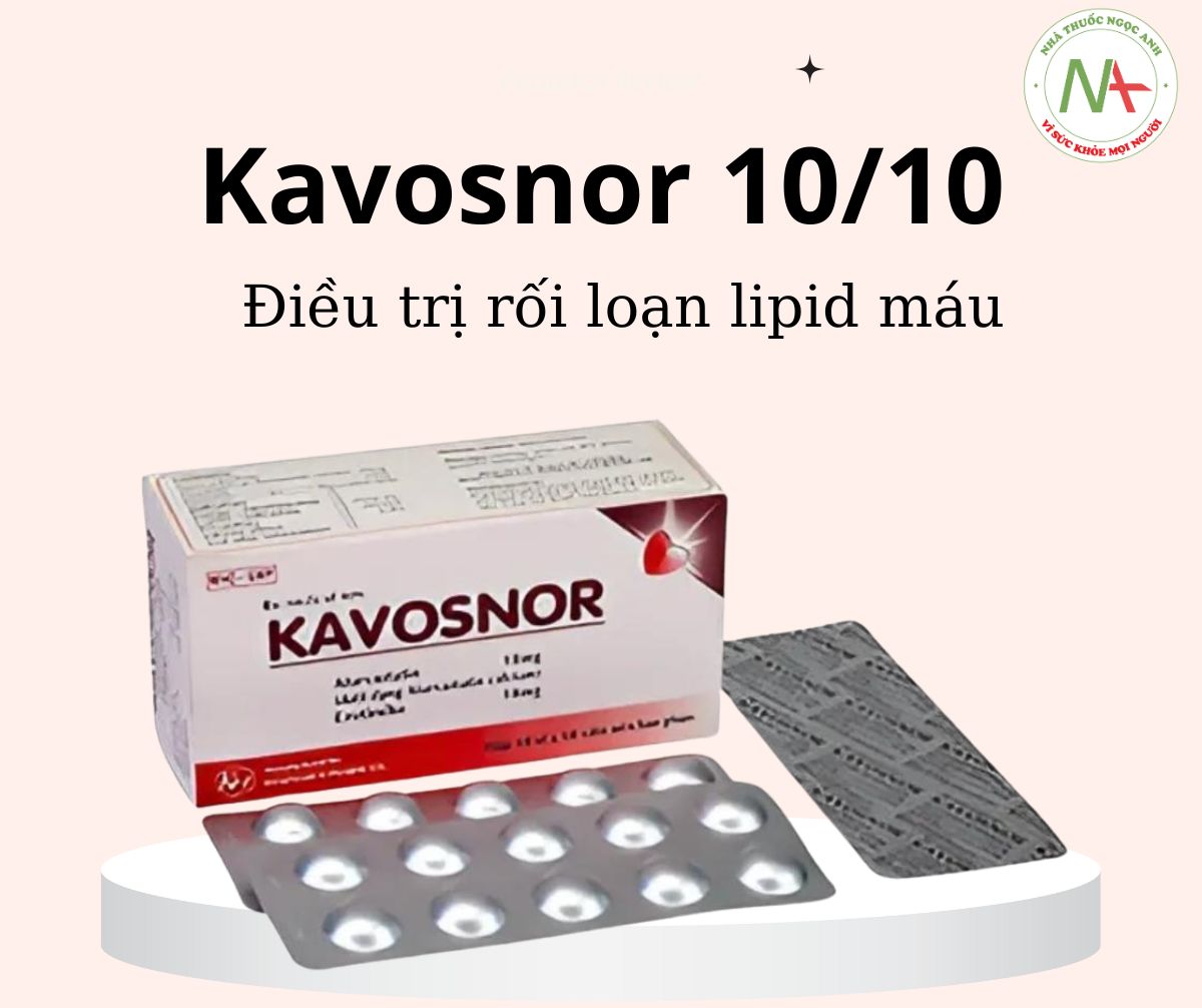 Kavosnor 10/10 được dùng trong điều trị rối loạn lipid máu, chỉ được coi là 1 phần của sự can thiệp vào các yếu tố nguy cơ ở người lớn bị nguy cơ tăng cholesterol máu dẫn tới tăng nguy cơ xơ vữa động mạch, thuốc được chỉ định như biện pháp hỗ trợ cho chế độ ăn uống hạn chế cholesterol