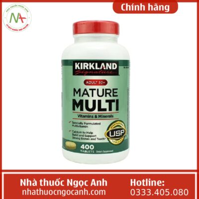 - Kirkland Signature Mature Multi Adult 50+ là sản phẩm không chỉ bổ sung nhiều vitamin mà còn bổ sung nhiều loại khoáng chất giúp tăng cường miễn dịch, bảo vệ cơ thể khỏi nhiều nguy cơ bệnh lý.