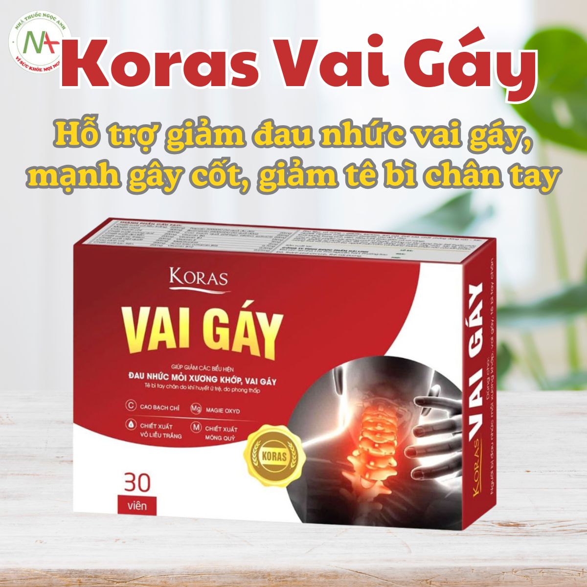 Viên uống Koras Vai Gáy được chiết xuất từ các dược liệu tự nhiên kết hợp cùng vitamin và khoáng chất, mang lại tác dụng hỗ trợ giảm đau và tăng cường sức khỏe xương khớp.