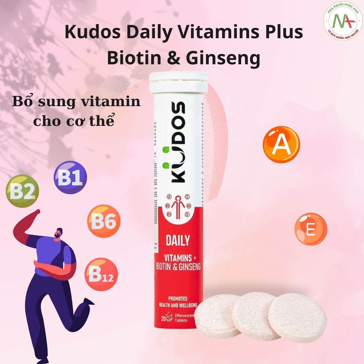 Kudos Daily Vitamins Plus Biotin & Ginseng có tác dụng bổ sung vitamin cho cơ thể