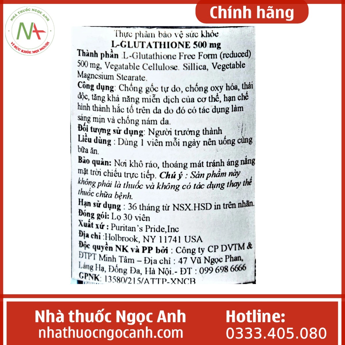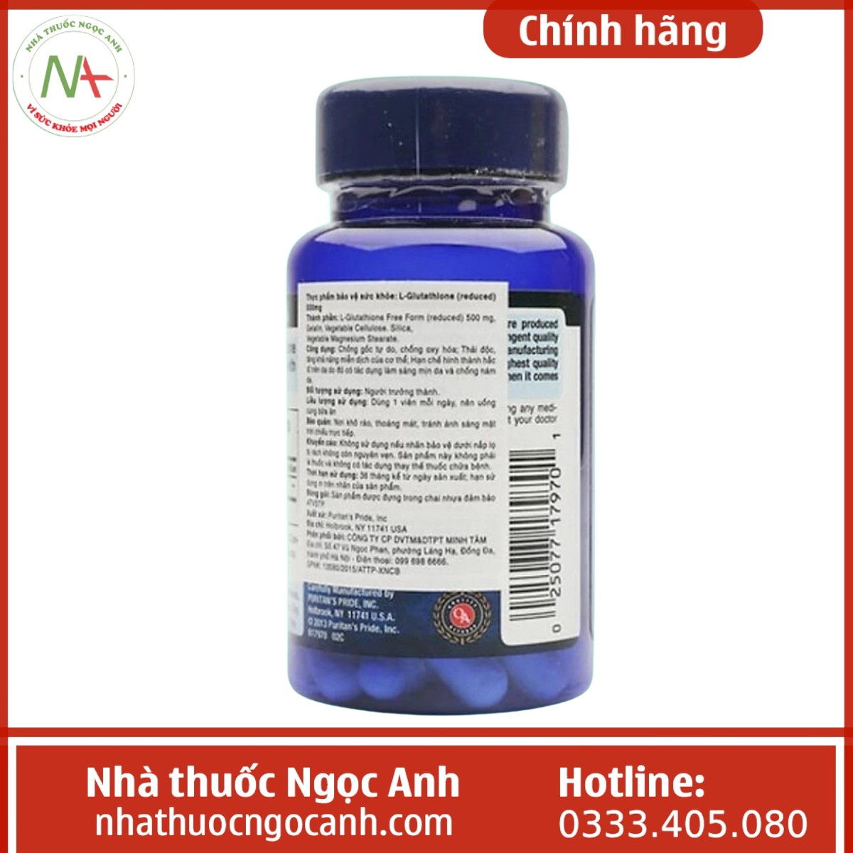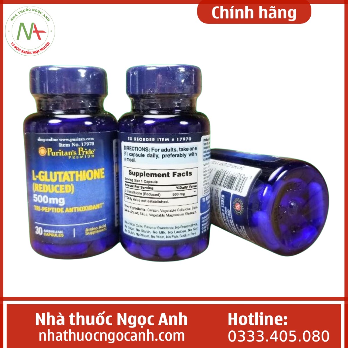 L-Glutathion Reduced 500mg Puritan’s Pride hiện được bán tại nhà thuốc Ngọc Anh với giá 500000 đồng/ lọ 30 viên.