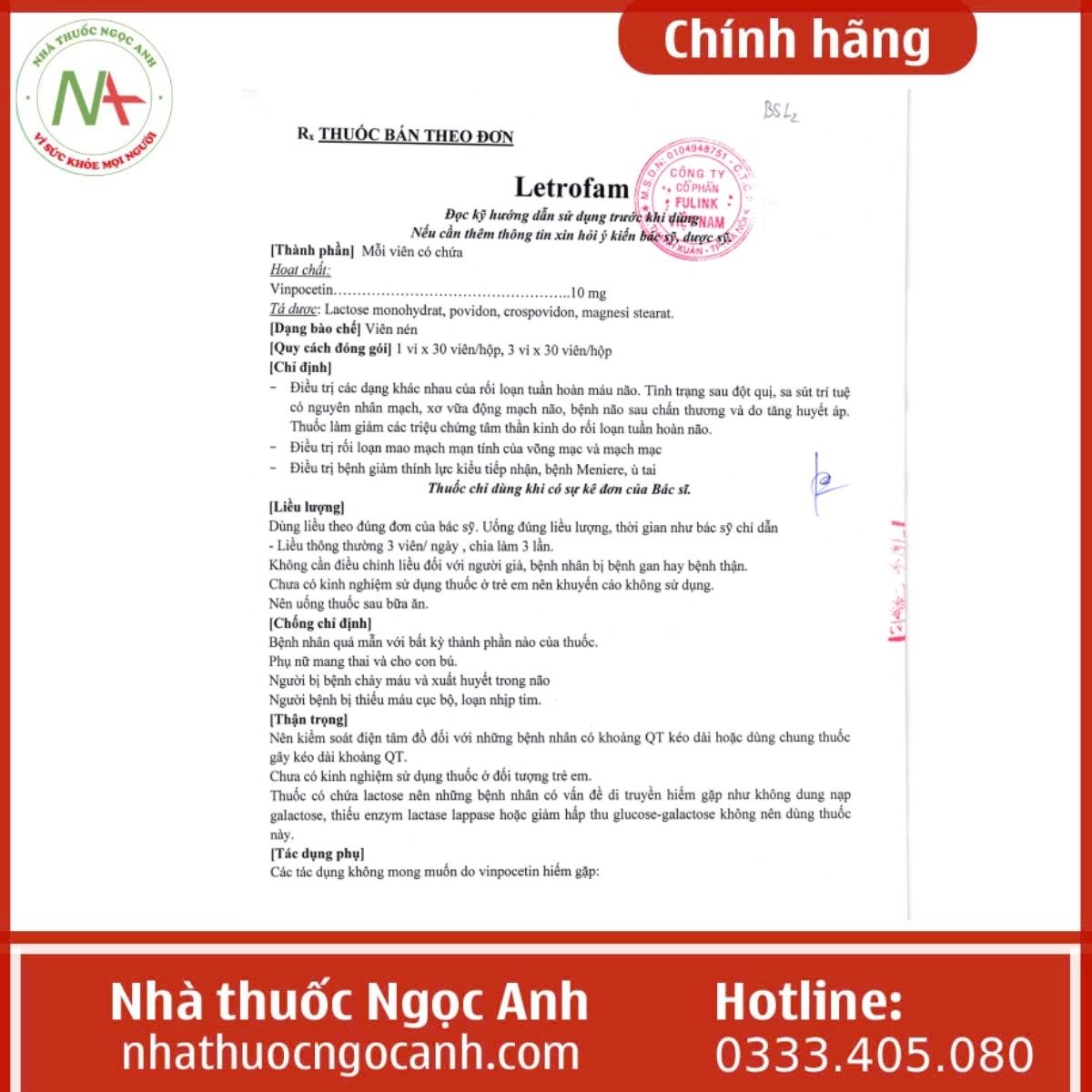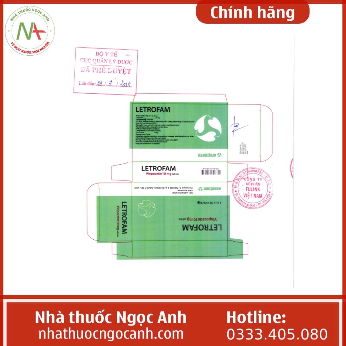 Tờ hướng dẫn sử dụng thuốc Letrofam đươc Cục quản lý Dược phê duyêt. Xem và tải file PDF đầy đủ tại đây.