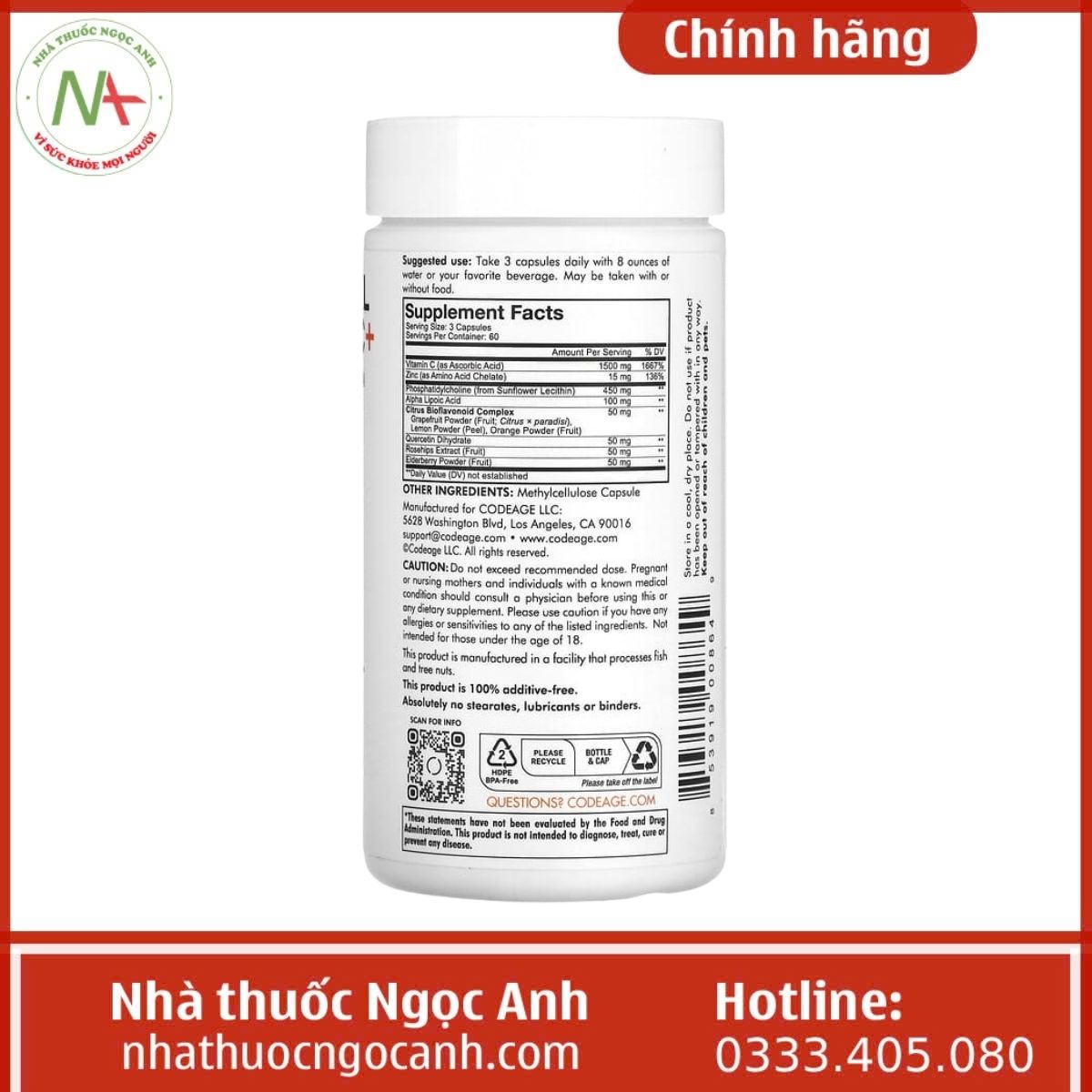 - Phức hợp Bioflavonoid Citrus: 50mg