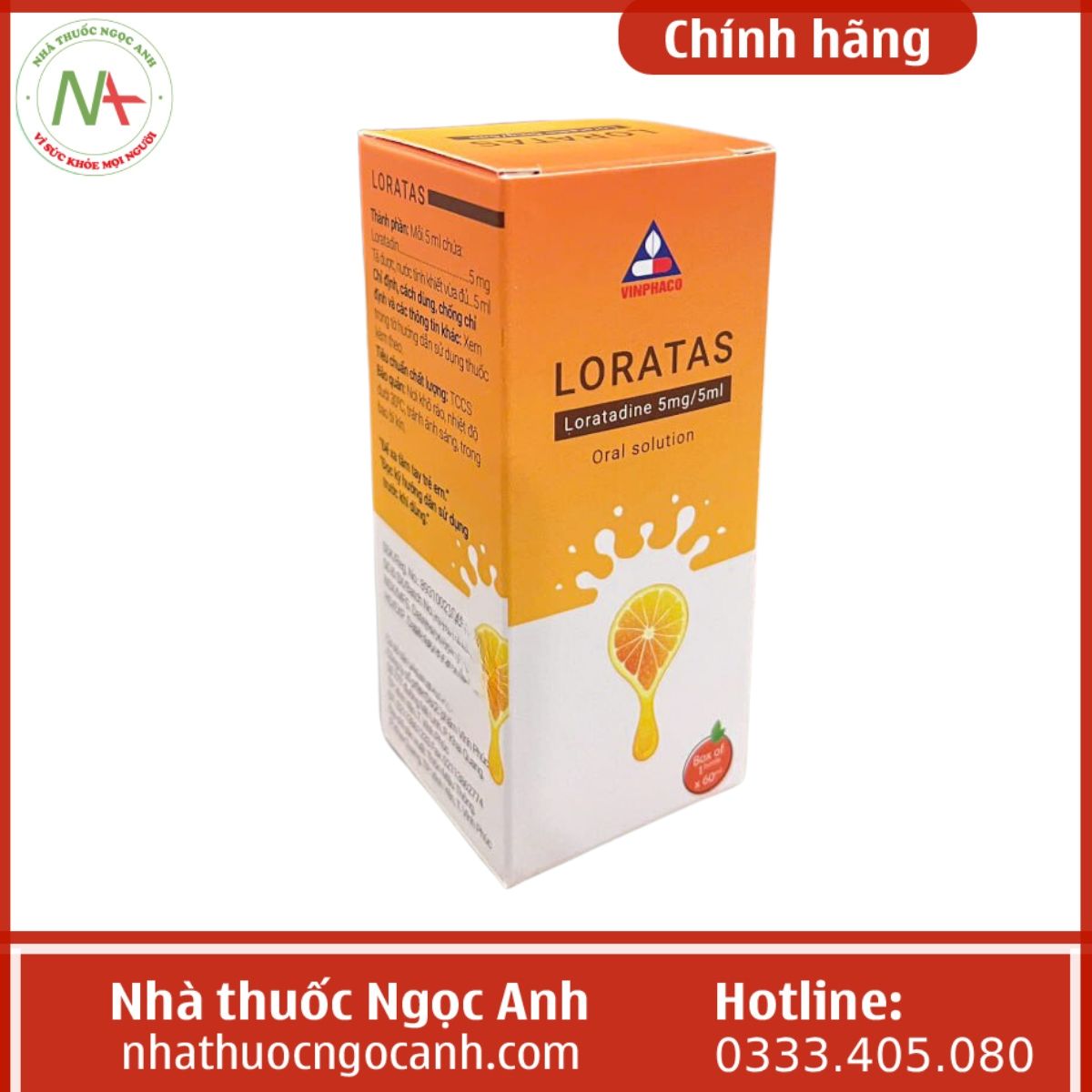 Hiện nay giá thuốc Loratas 5mg/5ml sẽ có sự chênh lệch ít nhiều tùy từng cơ sở phân phối thuốc và tùy từng thời điểm diễn ra các chương trình khuyến mãi vì vậy giá bán Loratas 5mg/5ml của Nhà thuốc Ngọc Anh chỉ áp dụng cho các cơ sở thuộc hệ thống Nhà thuốc Ngọc Anh.