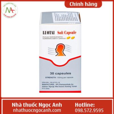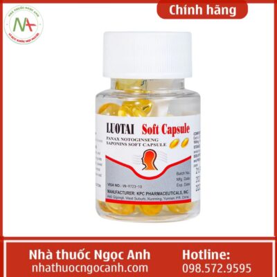 Thuốc Luotai soft capsule là thuốc không kê đơn chứa thành phần chính là saponin từ lá của cây tam thất (Panax notoginseng). Thuốc có tác dụng trong việc điều trị đột quỵ, nhồi máu cơ tim có liên quan đến xơ vữa động mạch và tắc huyết khối, giúp hỗ trợ tăng cường tuần hoàn máu não, giảm thiểu các triệu chứng do thiếu máu não gây ra.