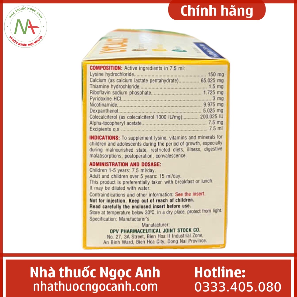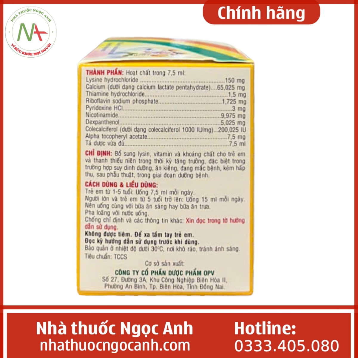 - Nhà sản xuất: Công ty Cổ phần Dược phẩm OPV