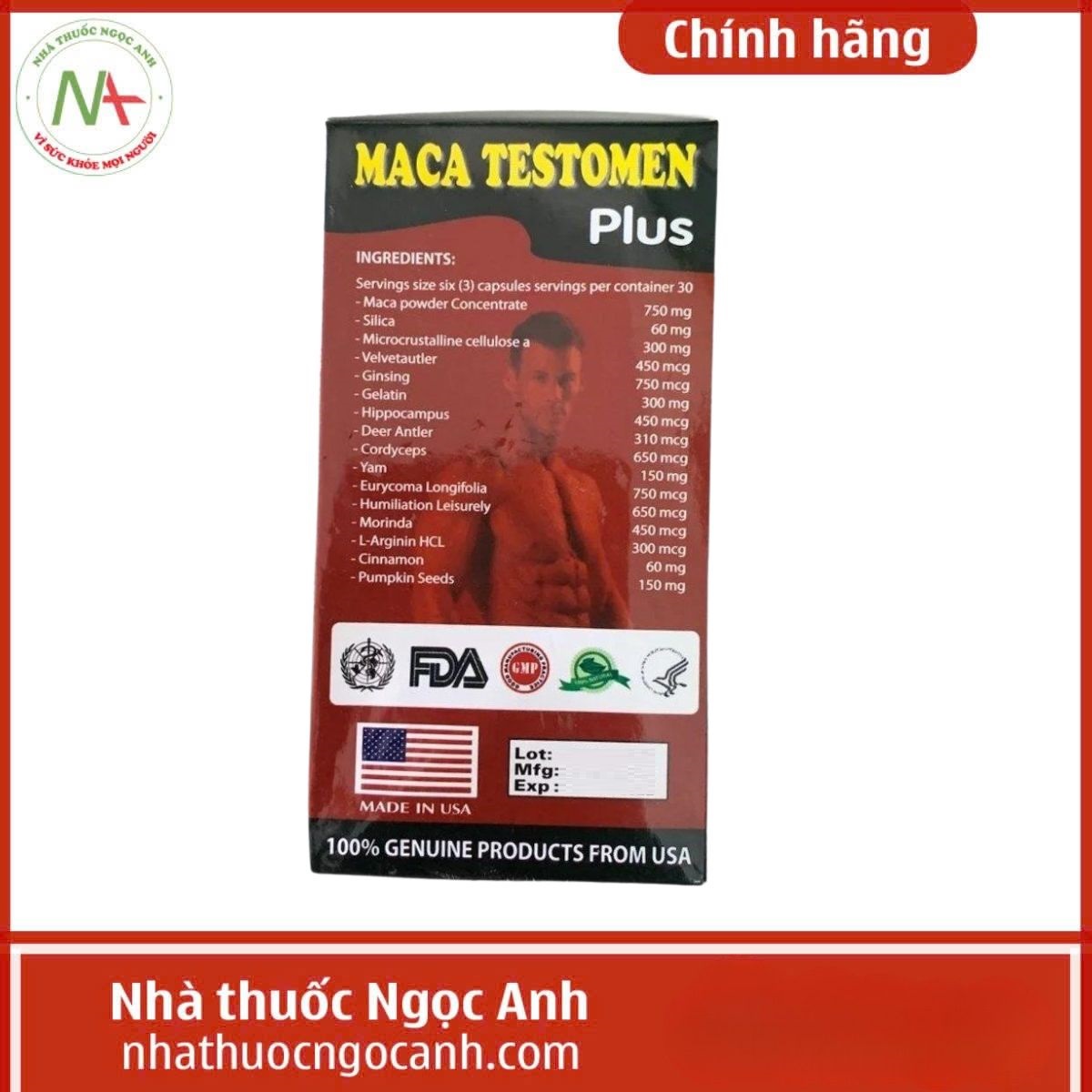 Maca Testomen Plus có thành phần chính bao gồm: