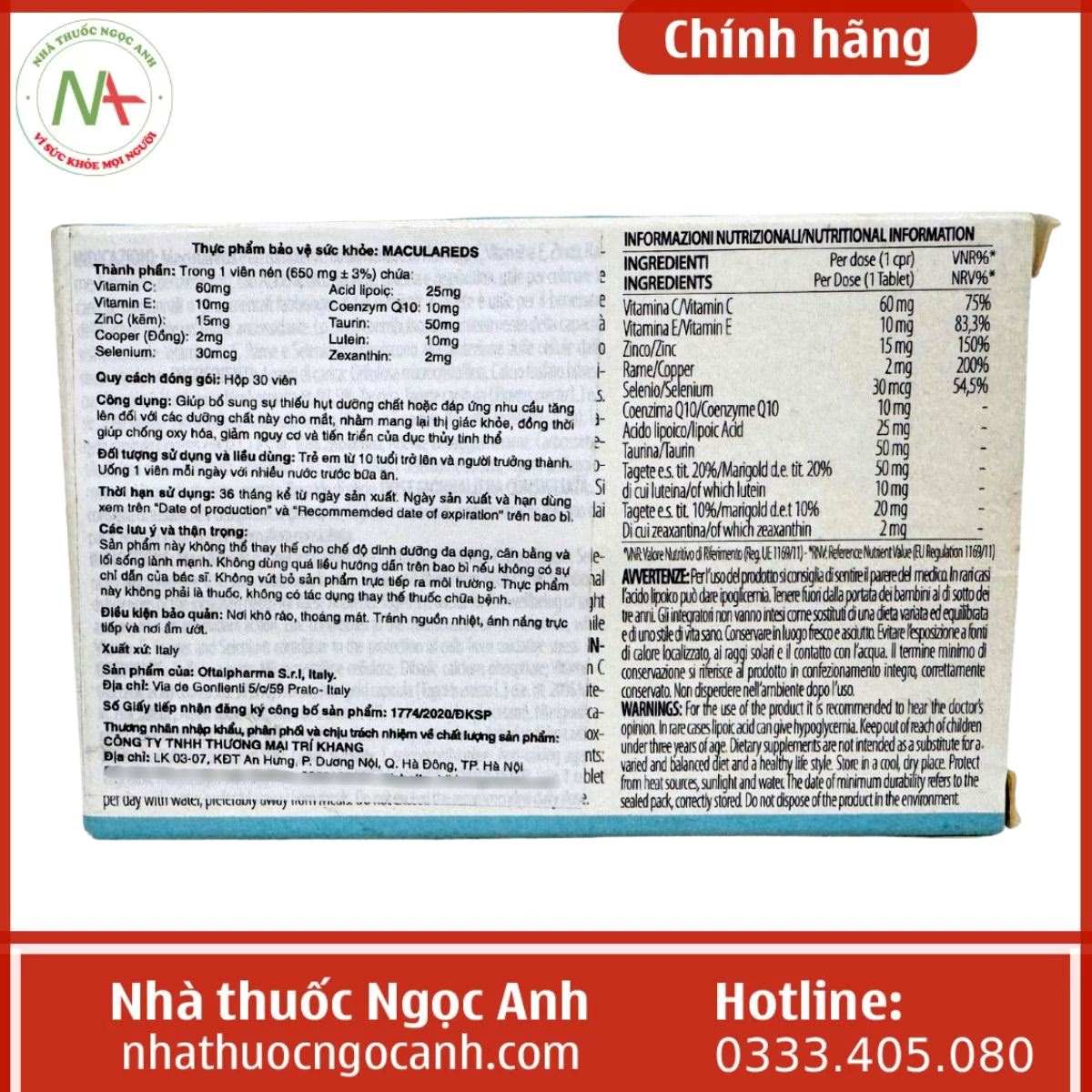 Do nguy cơ mua phải hàng nhái và hàng giả, bạn nên lựa chọn kỹ nơi mua sản phẩm. Tốt nhất nên chọn những nơi uy tín, có đầy đủ giấy tờ kinh doanh và nguồn gốc hàng hóa. Bạn đọc có thể tham khảo mua Maculareds chính hãng tại nhà thuốc Ngọc Anh. Chúng tôi luôn cam kết bán hàng chính hãng và có chính sách giao hàng đến tận nơi cho mọi quý khách hàng.