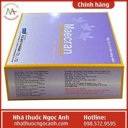 Hiện nay trên thị trường có nhiều thông tin về thuốc Maecran cung cấp vitamin và khoáng chất cho cơ thể. Bài viết sau đây nhà thuốc Ngọc Anh xin gửi đến bạn đọc Maecran là thuốc gì? Giá bao nhiêu? Mua ở đâu chính hãng?