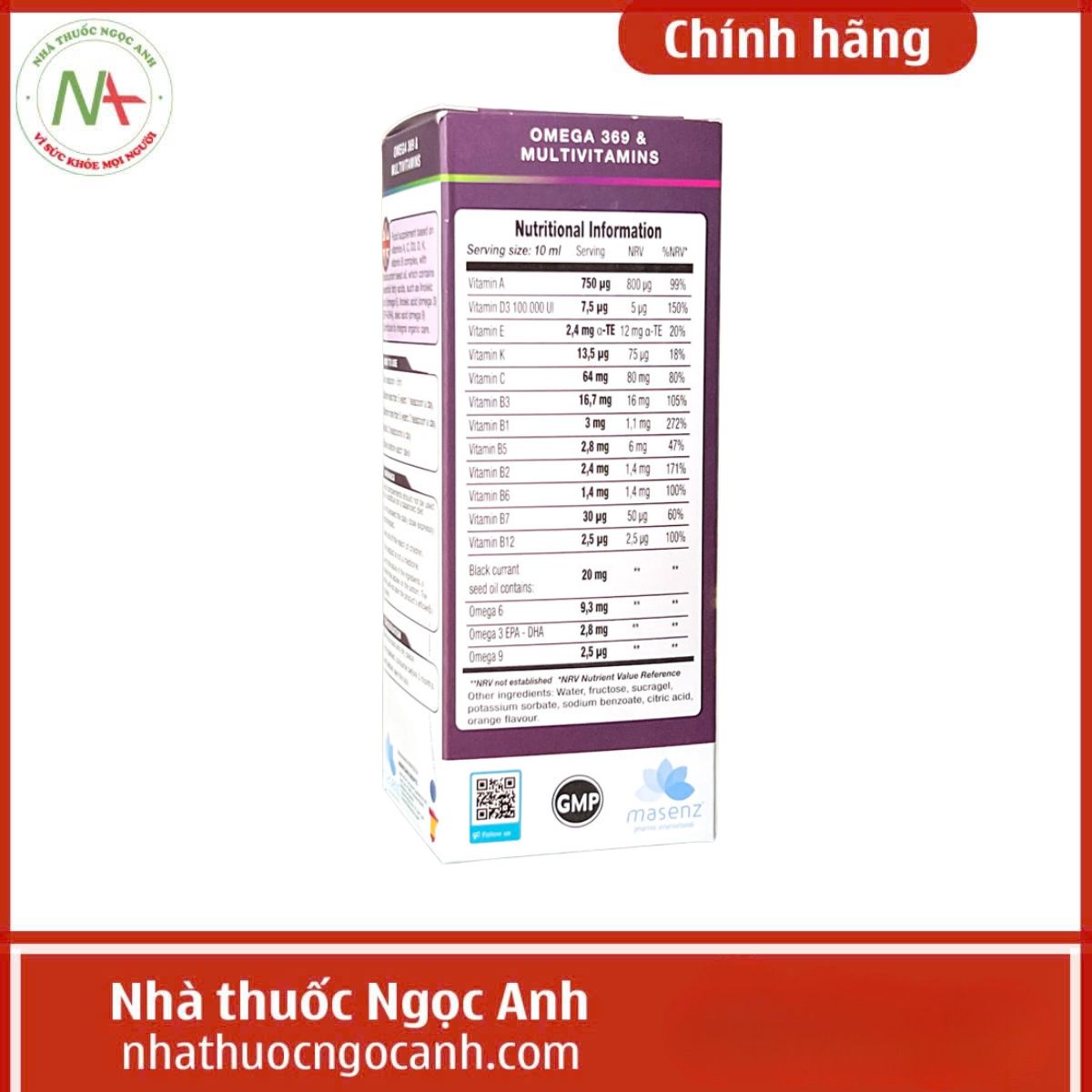 Masvitam Omega 369 + Multivitaminas có thành phần chính bao gồm: