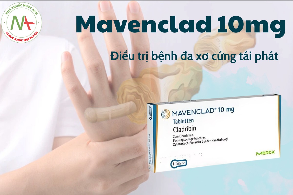 - Mavenclad 10mg chứa hoạt chất ức chế chuyển hóa nucleoside là cladribine. Cơ chế tác dụng của cladribine trong điều trị bệnh đa xơ cứng (multiple sclerosis) chưa được làm sáng tỏ hoàn toàn. Tuy nhiên, cladribine được cho là có tác động gây độc tế bào đối với tế bào lympho B và T thông qua việc ức chế tổng hợp DNA, dẫn đến sự suy giảm số lượng tế bào lympho.