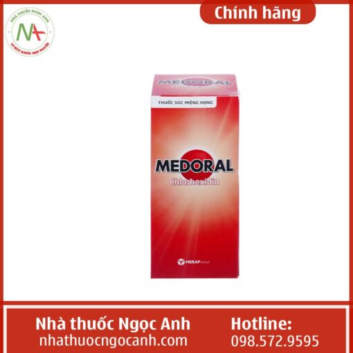 Giá của mỗi sản phẩm được nhà thuốc Ngọc Anh công khai trên website của nhà thuốc ( nhathuocngocanh.com ). Giá của Thuốc Medoral chlorhexidin đang được bán lẻ với giá 90.000VNĐ/hộp 1 lọ 250ml.