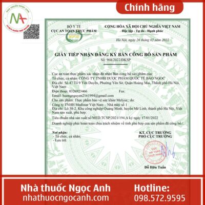 - Sản phẩm được sản xuất theo công nghệ đạt chuẩn GMP và đã trải qua giai đoạn kiểm nghiệm khắt khe bởi Bộ Y tế Cục vệ sinh an toàn vì vậy bạn có thể yên tâm khi sử dụng.