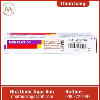 Hiện nay có rất nhiều thông tin về thuốc Menelat 30 nhưng chưa đầy đủ. Trong bài viết dưới đây, Nhà Thuốc Ngọc Anh (nhathuocngocanh.com) xin gửi đến bạn đọc thuốc Menelat 30 là gì? Cách sử dụng thuốc? Các lưu ý khi dùng thuốc Menelat 30.
