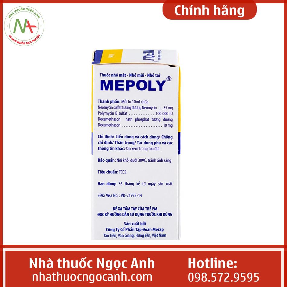 Mepoly được sản xuất bởi Công ty Cổ phần Dược phẩm Merap với số đăng ký: VD-21973-14.
