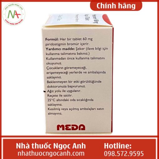 - Hoạt chất chính Pyridostigmin bromide có hàm lượng 60mg.