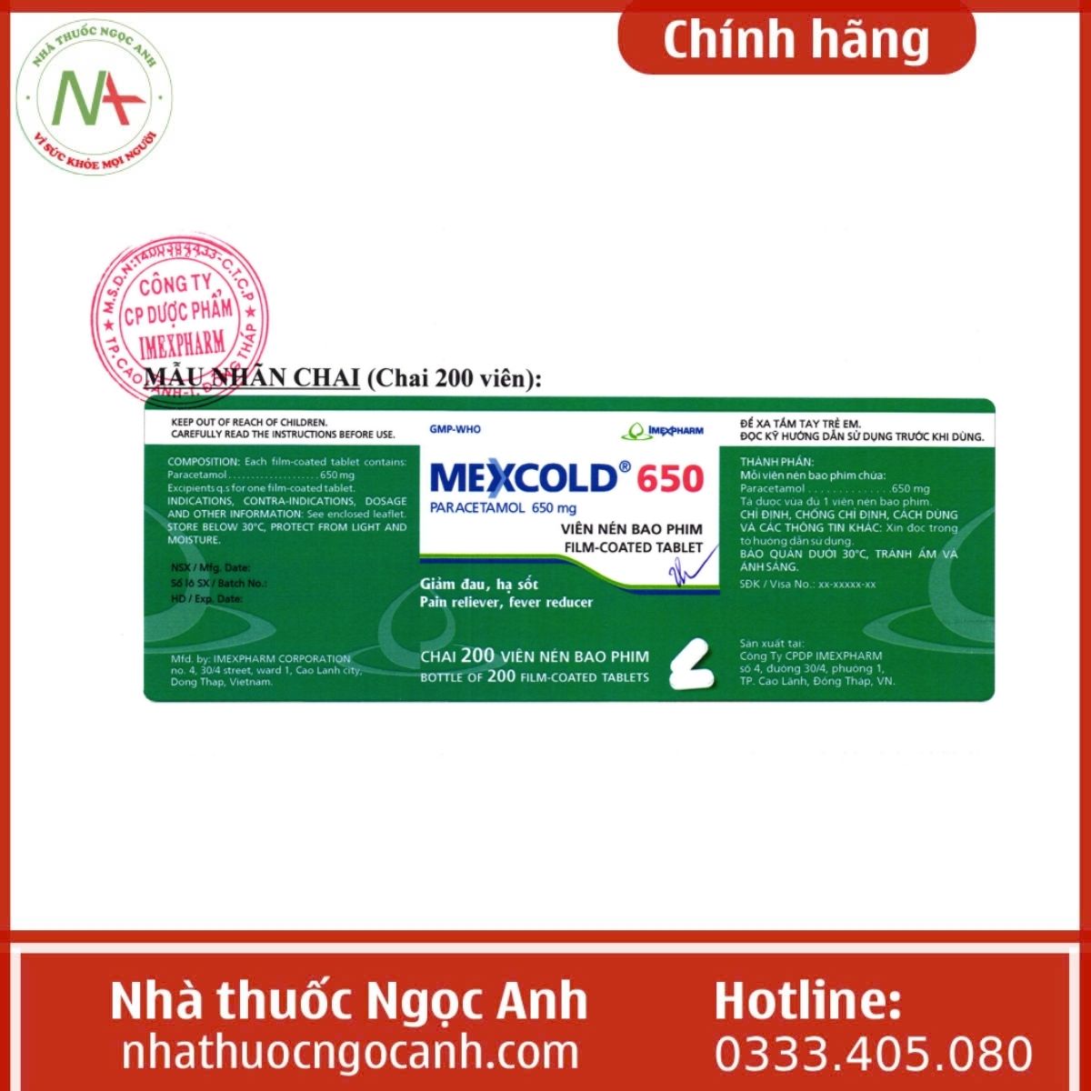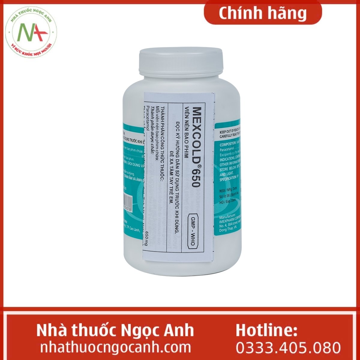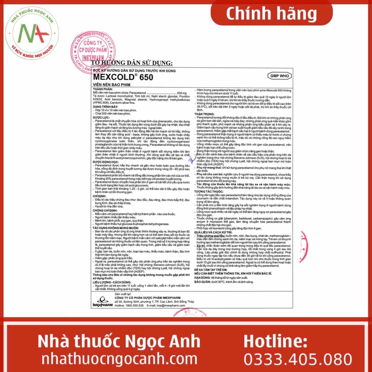 - Tờ Hướng dẫn sử dụng thuốc Mexcold 650 do Cục Quản lý Dược phê duyệt. Xem và tải file PDF tại đây.