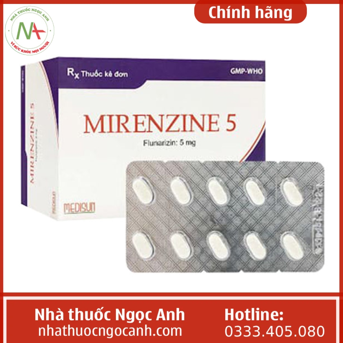 Thuốc Mirenzine 5 là thuốc kê đơn, trong thuốc có chứa thành phần Flunarizine. Thuốc thường được chỉ định để dự phòng điều trị bệnh đau nửa đầu trong trường hợp biện pháp không có hiệu quả. Sản phẩm này do Công ty cổ phần dược phẩm Me Di Sun sản xuất và có số đăng ký lưu hành (Mirenzine 5 sdk) là VN-22433-19.