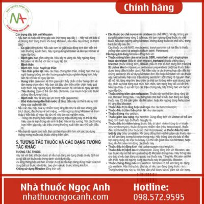 - Nefazodon: làm tăng nồng độ của Mirzaten trong máu.