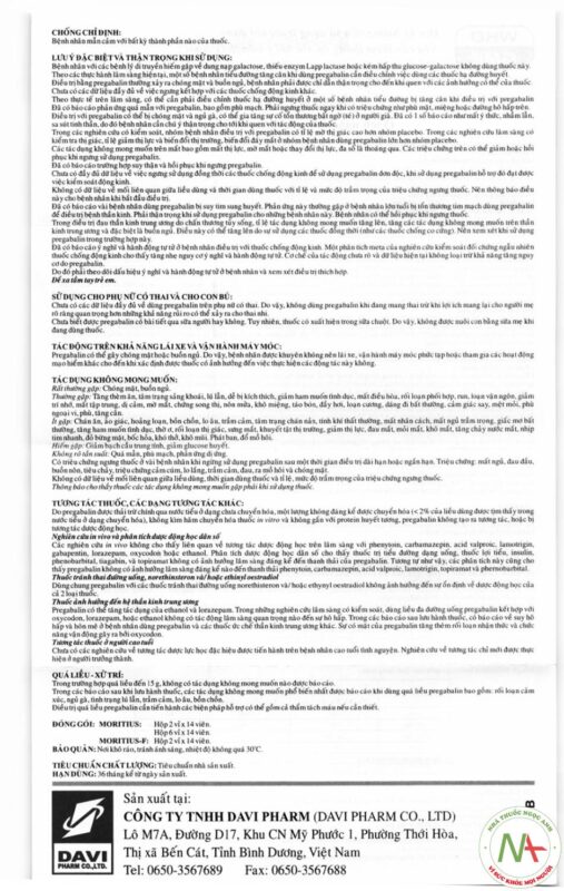 Thuốc Moritius 75mg là thuốc kê đơn có chứa Pregabalin, có hiệu quả tốt trong việc điều trị các triệu chứng của bệnh động kinh, điều trị các chứng đau do đau dây thần kinh, các triệu chứng lo âu.