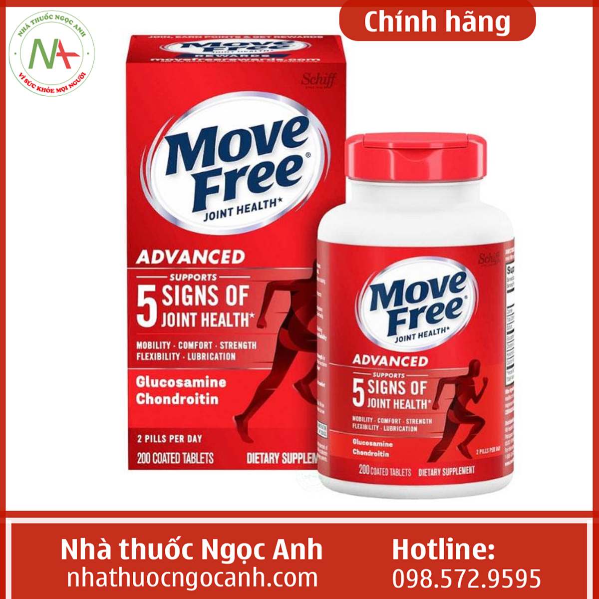 Trong nhiều năm, việc lựa chọn điều trị có sẵn để quản lý viêm khớp tập trung vào giảm viêm và kiểm soát cơn đau chủ yếu dùng thuốc kháng viêm không Steroid và thuốc giảm đau. Tuy nhiên, việc sử dụng các thuốc này dễ gây ra tác dụng phụ toàn thân. Do đó hiện nay, chúng ta có thể lựa chọn một loại thực phẩm hỗ trợ sức khỏe để sử dụng duy trì. Sản phẩm Move Free Joint Health được khá nhiều người biết với công dụng hỗ trợ giảm đau xương khớp, tăng cường độ linh động của các khớp. Vậy sản phẩm Move Free Joint Health có tốt không? Lưu ý cách sử dụng như thế nào? Xin mời quý bạn đọc cùng Nhà thuốc Ngọc Anh tìm hiểu đầy đủ những thông tin về chúng.