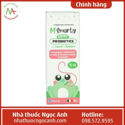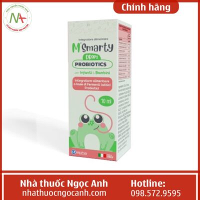 Men vi sinh 10 chủng M’smarty hay M’smarty Drops Probiotics là men vi sinh chứa 10 chủng vi khuẩn có lợi cho đường ruột của trẻ, giúp cân bằng hệ vi sinh đường ruột của trẻ, giảm các triệu chứng do rối loạn tiêu hóa, giúp trẻ ăn ngon, ngừa táo bón, tiêu chảy… ở trẻ. Đồng thời, Men 10 chủng M’smarty cũng hỗ trợ tăng cường sức đề kháng, giảm được tình trạng ốm vặt ở trẻ.