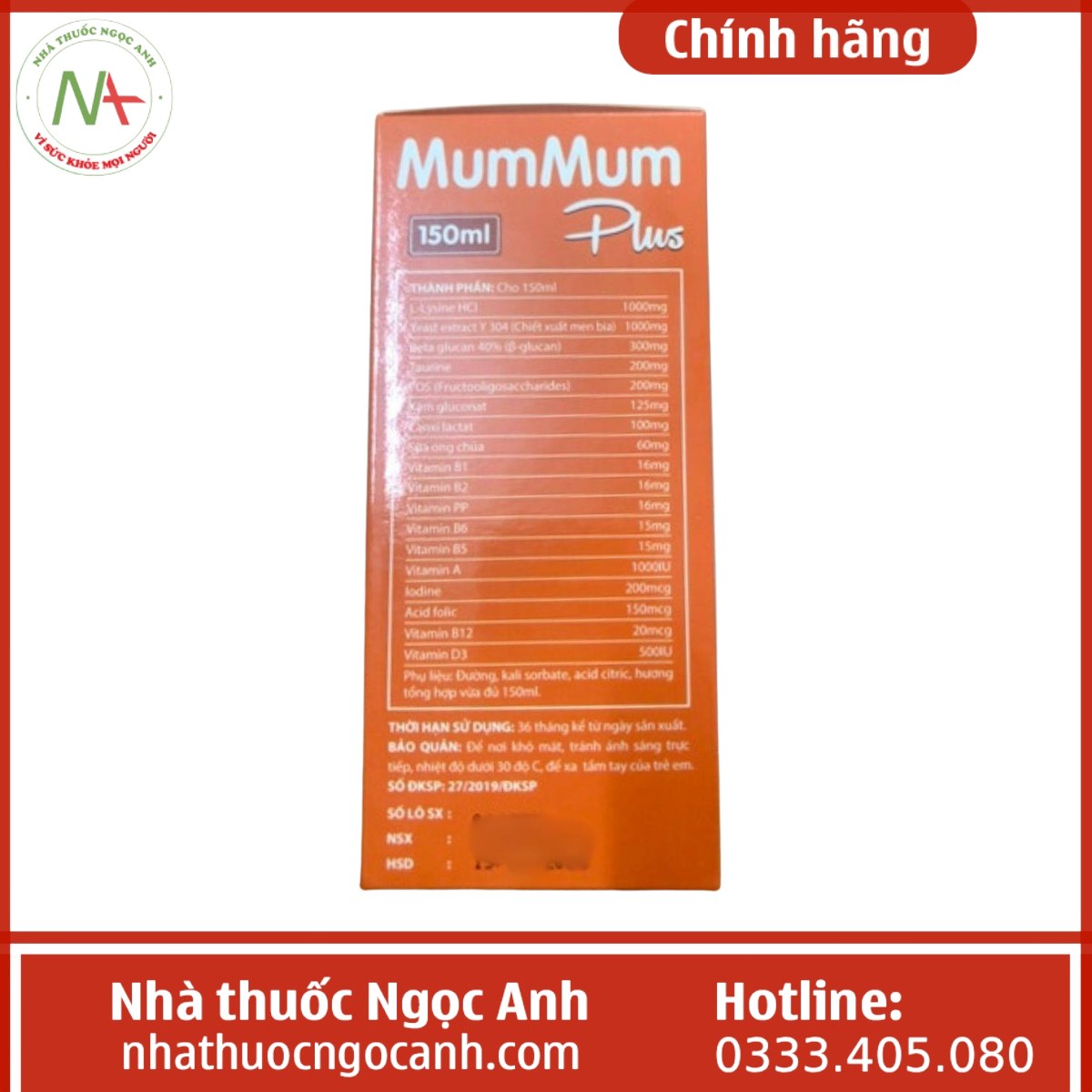 Trong 1 chai siro Mum Mum Plus Medistar 150ml có chứa các thành phần với hàm lượng như sau: