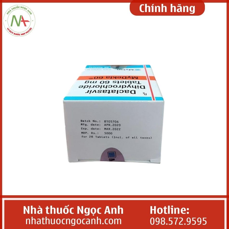 Thuốc Mydekla 60 là thuốc điều trị viêm gan C của Ấn, thuộc nhóm thuốc trị ký sinh trùng, chống nhiễm khuẩn, kháng virus, kháng nấm. Mydekla 60 được sử dụng cùng với các thuốc khác để điều trị viêm gan C mạn tính nhất định và giúp phục hồi chức năng gan.