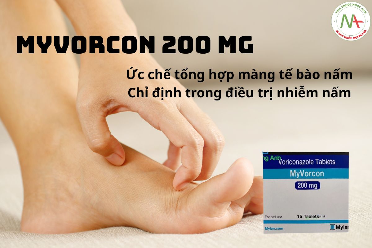 Viên uống MyVorcon 200 mg được sử dụng để điều trị các trường hợp nhiễm nấm nghiêm trọng, bao gồm: aspergillosis xâm lấn, candidemia ở bệnh nhân không trung tính bạch cầu, nhiễm Candida tại nội tạng sâu, nhiễm nấm Scedosporium và Fusarium khi không còn lựa chọn điều trị khác. Thuốc cũng được dùng dự phòng cho những bệnh nhân có nguy cơ nhiễm nấm cao như sau ghép tủy xương.