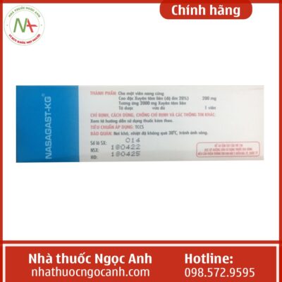 Thuốc Nasagast – KG đang được bán trên thị trường với giá dao động khoảng 120.000 VND/hộp 100 viên. Để biết thêm thông tin về giá bán thuốc Nasagast – KG tại Nhà thuốc Ngọc Anh và nhận nhiều ưu đãi hãy liên hệ tới số hotline 098 572 9595.