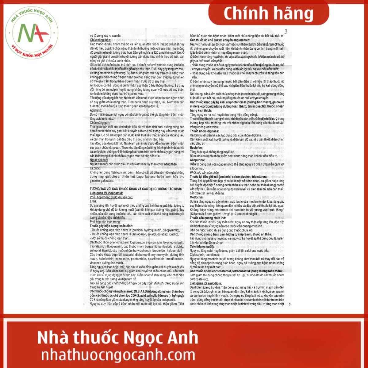 - Các thuốc chống viêm steroid (NSAID) có thể làm giảm tác dụng hạ huyết áp của indapamid và tăng nguy cơ suy thận cấp ở bệnh nhân mất nước.