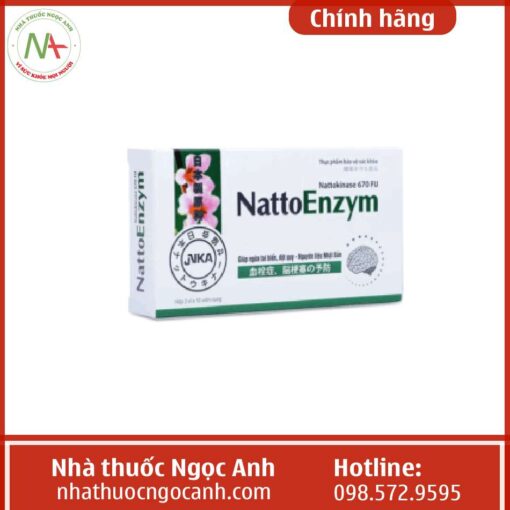 NattoEnzym là sản phẩm thuộc nhóm thực phẩm chức năng, có công dụng làm tan cục máu đông. Có tác dụng lên các tế bào máu, nắn các tế bào máu kết dính lại với nhau và là giảm huyết áp. Ngoài ra, enzyme NattoKinase còn có khả năng làm sạch máu giúp cải thiên tuần hoàn máu não và giảm thiểu nguy cơ mắc bệnh Alzheimer.