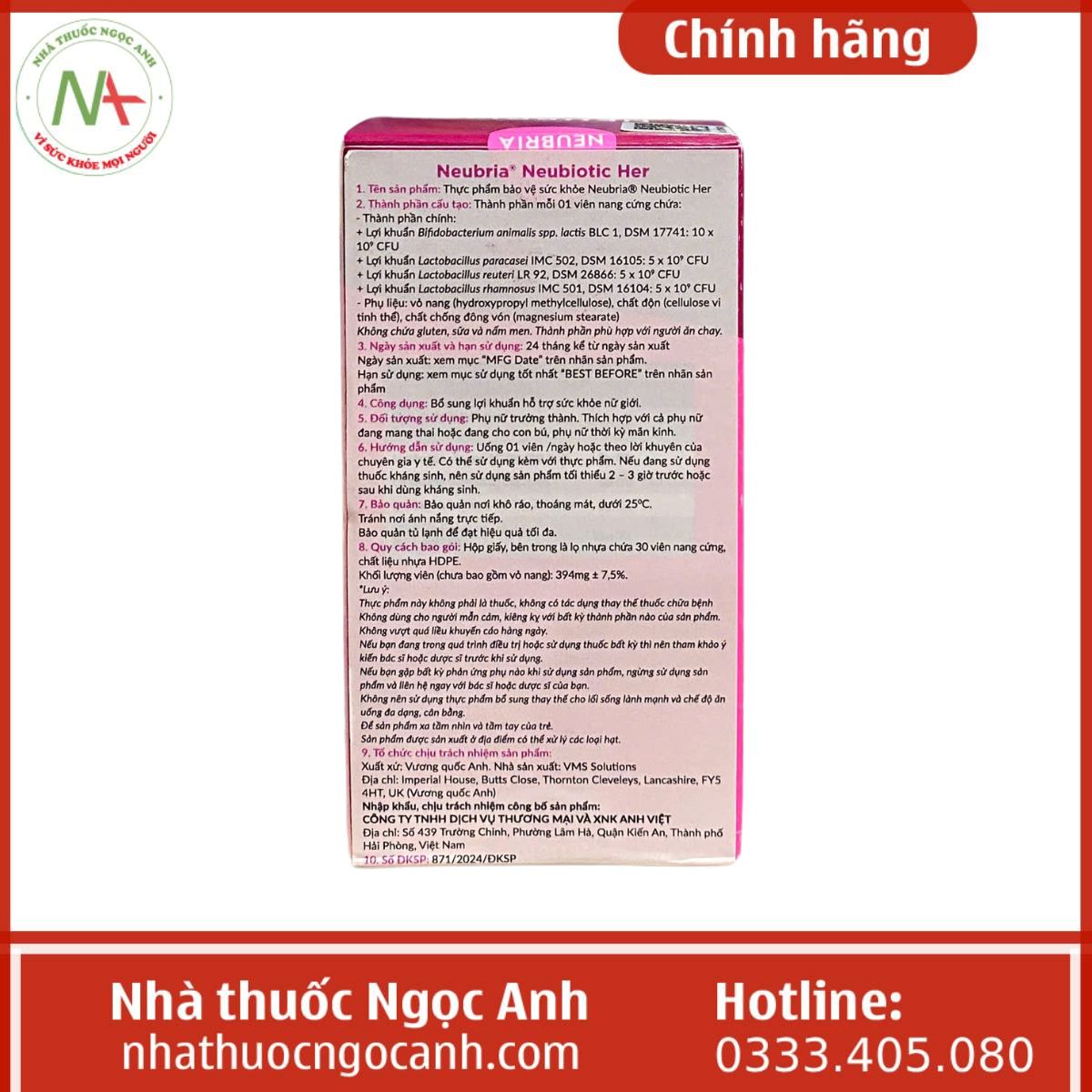 Giá Neubria® Neubiotic Her tại Nhà thuốc Ngọc Anh hiện nay đã được cập nhật trên đầu trang. Giá bán này chỉ áp dụng khi đến mua trực tiếp hay trực tuyến tại Nhà thuốc Ngọc Anh chứ không áp dụng cho các cơ sở bán buôn hay địa chỉ phân phối khác, các bạn đọc nên lưu ý điều này.