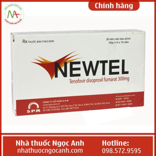 Newtel 300mg chứa hoạt chất chính là Tenofovir disoproxil fumarat, là một chất tương tự nucleotide mạch hở của adenosine được sử dụng kết hợp với các tác nhân khác trong điều trị vi rút suy giảm miễn dịch ở người (HIV) và là tác nhân đơn lẻ trong nhiễm vi rút viêm gan B (HBV). Đây là thuốc dùng trong điều trị bệnh viêm gan siêu vi B mạn tính và HIV-1 với