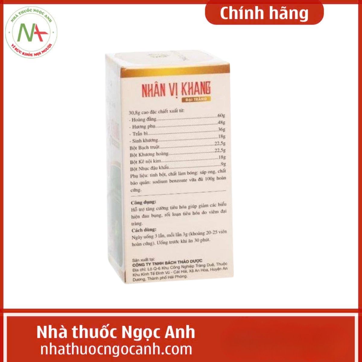 - Sản phẩm Nhân vị khang Đại tràng không phải là thuốc và không có tác dụng thay thế thuốc chữa bệnh.