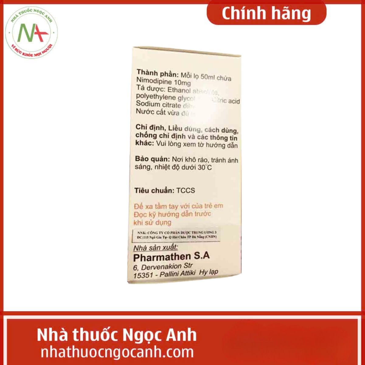- Hoạt chất: Nimodipine hàm lượng 10mg/50ml.